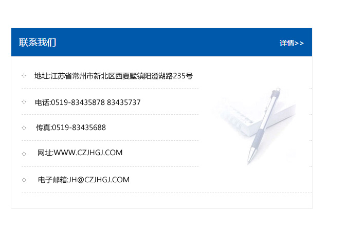 傳真:0519-83435688    郵編:213135    網址:WWW.czjhgj_com.tczlwx.com    電子郵箱:JH@czjhgj_com.tczlwx.com